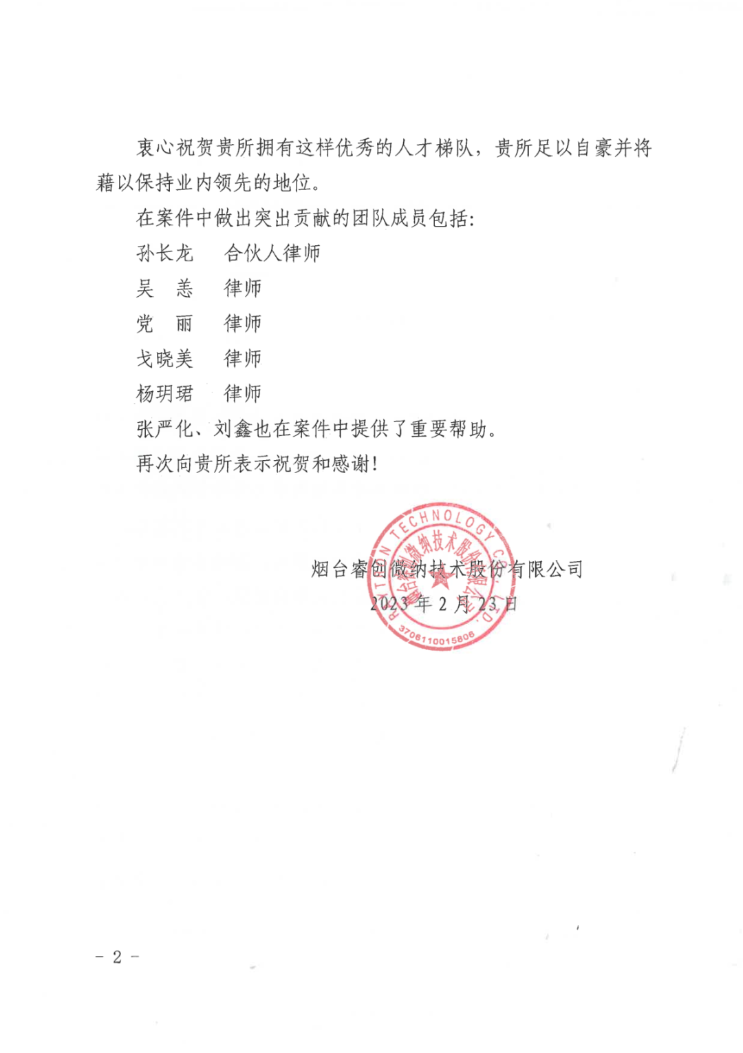 最后,感谢睿创集团知识产权团队对于本案的积极贡献,以及对于玩球直播的支持与信任,共同成就恶意诉讼案的最终胜利!
