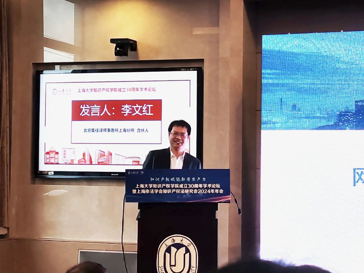 玩球直播上海分所主任、高级知识产权师李文红博士应邀出席大会,并在“释放知识产权价值 赋能新质生产力”分论坛上发表演讲,与来自众多高校的专家学者和业界代表共同就知识产权价值的释放与赋能新质生产力的路径进行了深入探讨。
